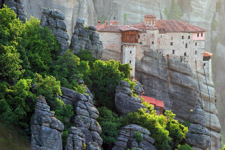 De rotsen zijn natuurlijke zandstenen torens die door aardverschuivingen omhoog zijn gekomen. Door erosie, in de tijd dat de omliggende vlakte nog een binnenzee was, werd de Meteora (dat "Hangende rotsen" betekent) gevormd. Rond het jaar 985 trokken zich voor het eerst kluizenaars terug op de moeilijk toegankelijke rotsen. Zij creëerden hier hun eigen leefomgeving en kwamen slechts af en toe naar beneden. Het is niet bekend hoe ze de steile rotswanden beklommen, mogelijk gebruikten ze vliegers om haken en touwladders aan te brengen.